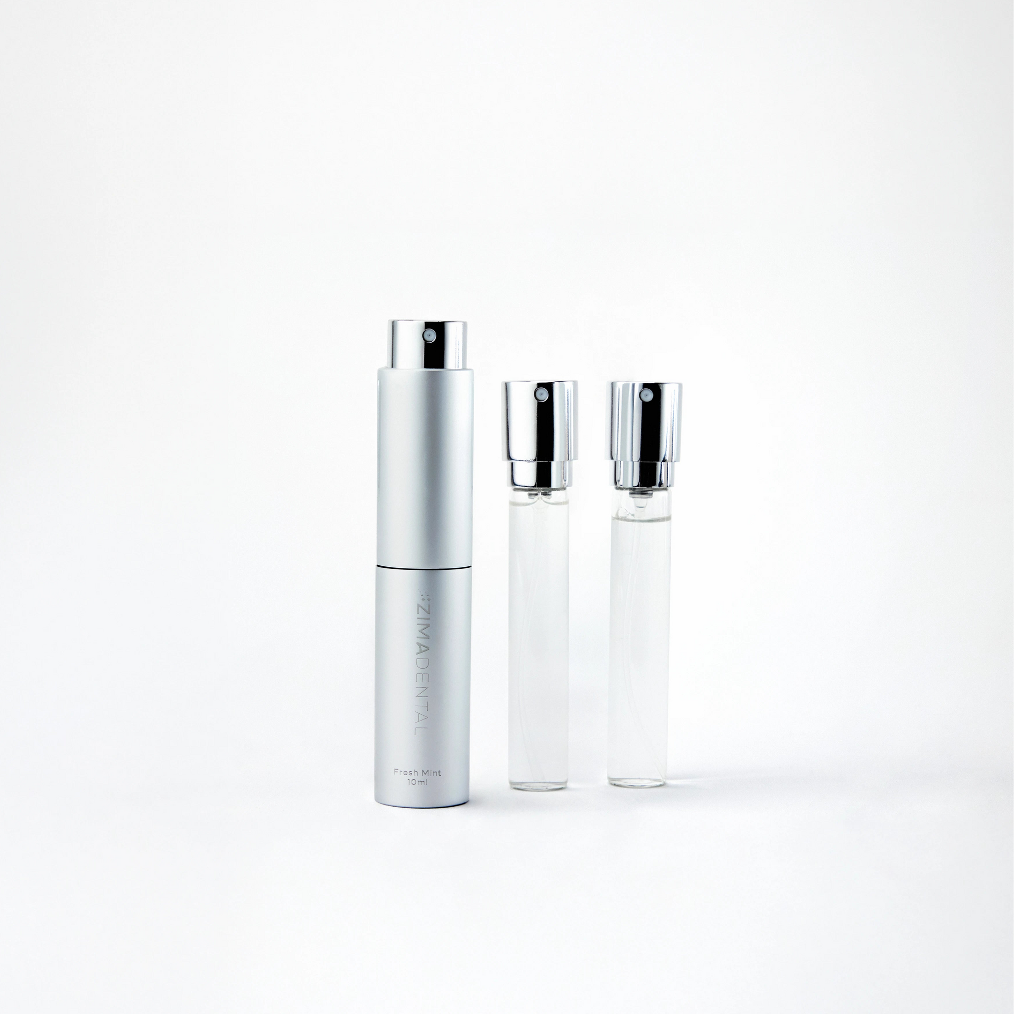 Spray Zima Fresh onto your aligners before you wear them, and/or directly into your mouth for fresh breath throughout the day. Each pack comes with 1 discreet, twist-top bottle and 2 refills, perfect for travel, work and days out and about.